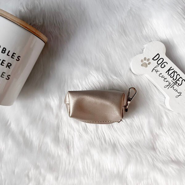 Upgrade your pet walks with the Golden Glow Waste Bag Holder! This chic metallic gold accessory is stylish, durable, and perfect for convenient, on-the-go cleanup.