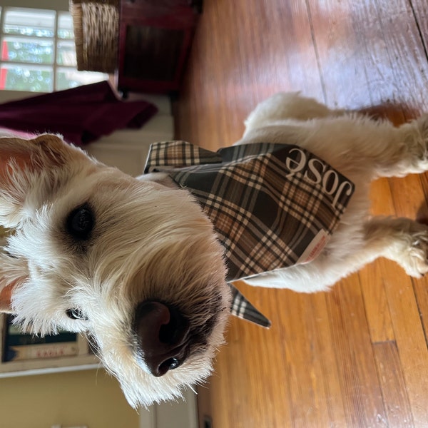 The neutral taupe and grey tones of this bandana make it a versatile accessory. It pairs easily with other items, giving your pet a polished look for any occasion. Whether your pet is out for a casual stroll or attending a more formal gathering, the plaid design adds a sophisticated touch. Timeless and stylish, this bandana will be a staple in your pet’s wardrobe for years to come.
