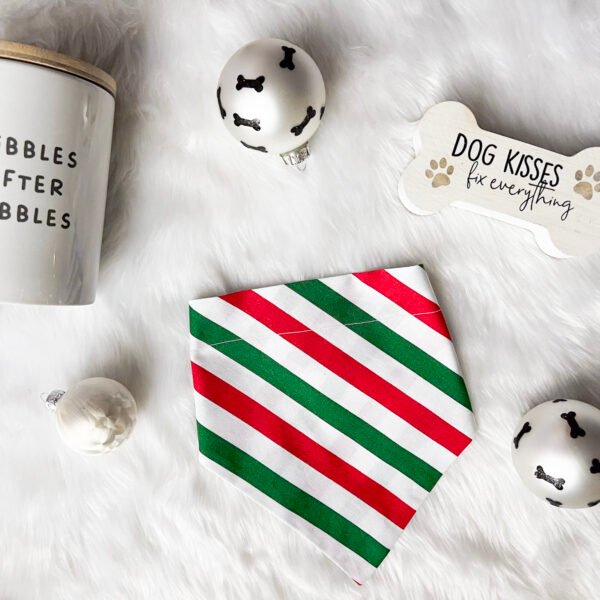 Dress your pet in holiday style with the Peppermint Bark Bandana! This festive red, green, and white striped accessory is perfect for spreading seasonal cheer and making memories.