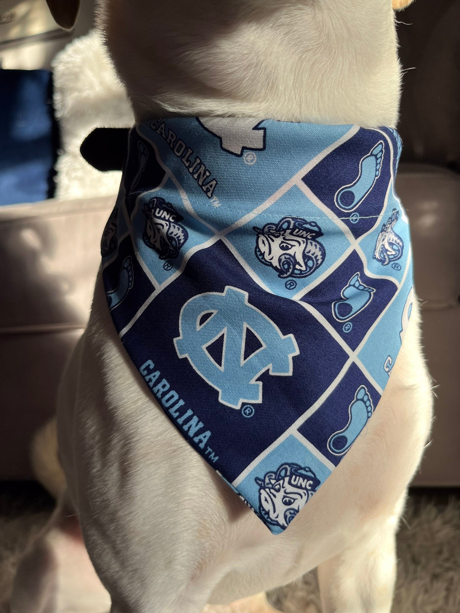 Let your pet show off their team pride with the Tar Heel Spirit Bandana! Featuring the iconic University of North Carolina logos and colors, this bandana is perfect for game days, tailgates, or everyday wear. Crafted from soft, high-quality fabric, it’s designed for comfort and durability, ensuring your furry fan looks their best while supporting the Tar Heels. Whether cheering from home or attending an event, the Tar Heel Spirit Bandana is a must-have for devoted fans and their pets!
