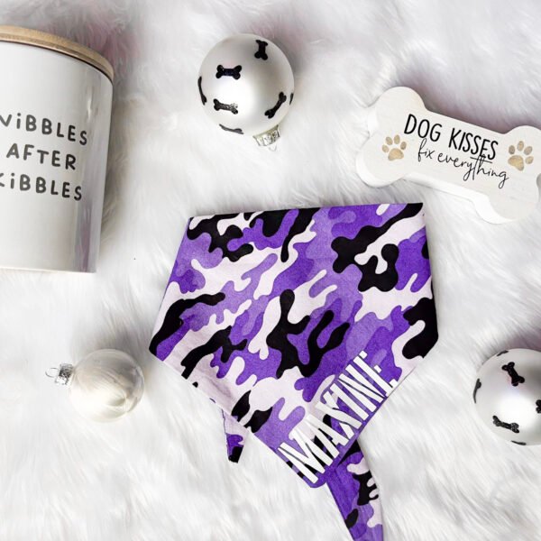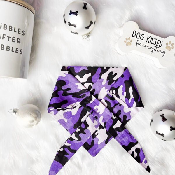 Whether on a city adventure, a trip to the park, or a casual day at home, this bold bandana complements your pet’s personality. The purple camo design adds a striking touch, while its versatility makes it a great choice for various activities.